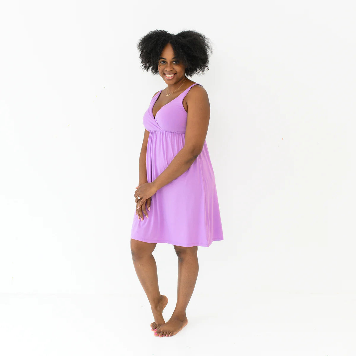 Sleep like a baby in this buttery soft, breathable nightgown that’s made for all night comfort. A crossover front provides easy access for middle-of-the night nursing while an empire waist keeps nursing pads in place. Chic and never frumpy, this nightgown adds a luxurious touch to your sleep experience.