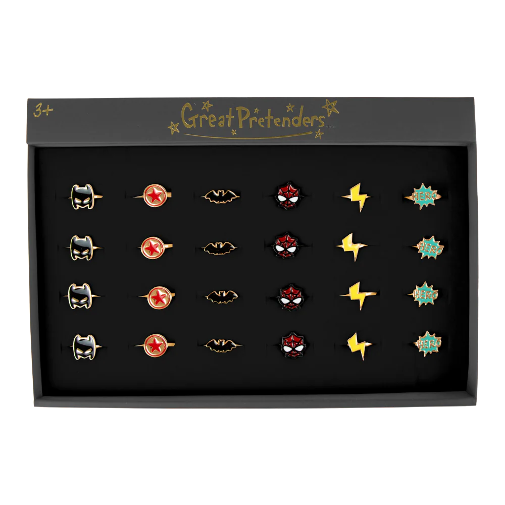 Unleash your inner superhero with Great Pretenders' Superhero Rings! These playful rings from Great Pretenders will add some superpowers to your outfit. Perfect for playtime or dress-up, these rings are sure to make any adventure more heroic. (Get ready to save the day!)