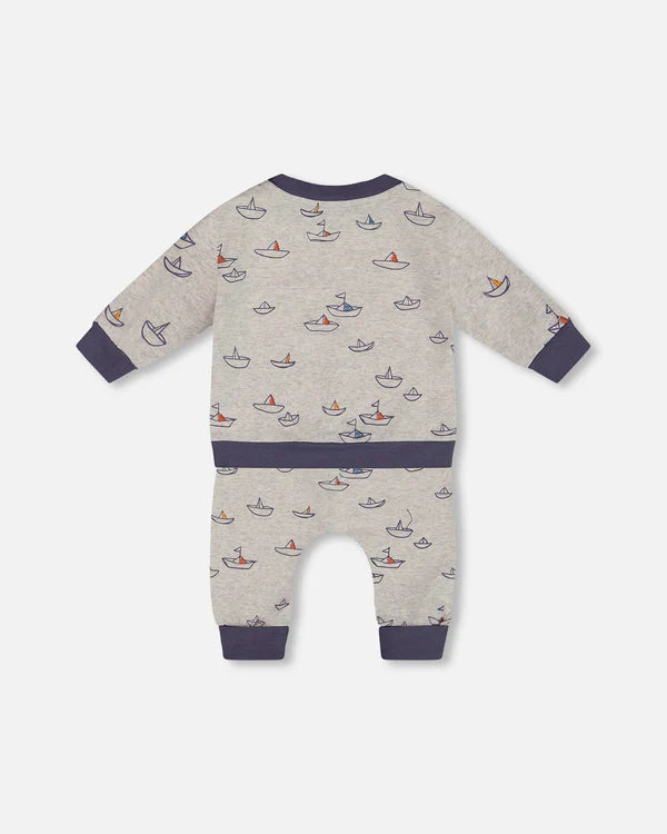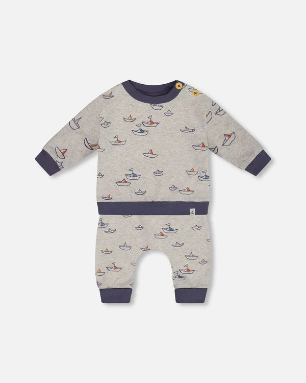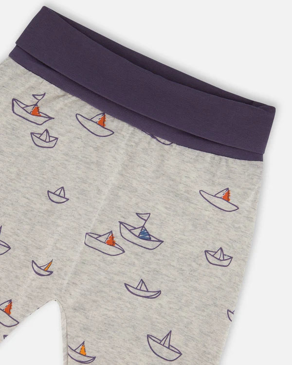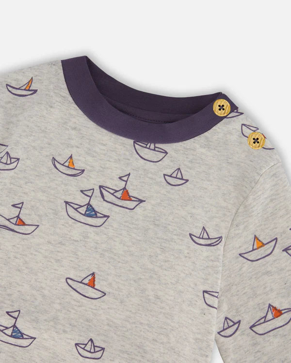 Deux Par Deux Long Sleeve Top & Pant Set - Blue Paper Boats