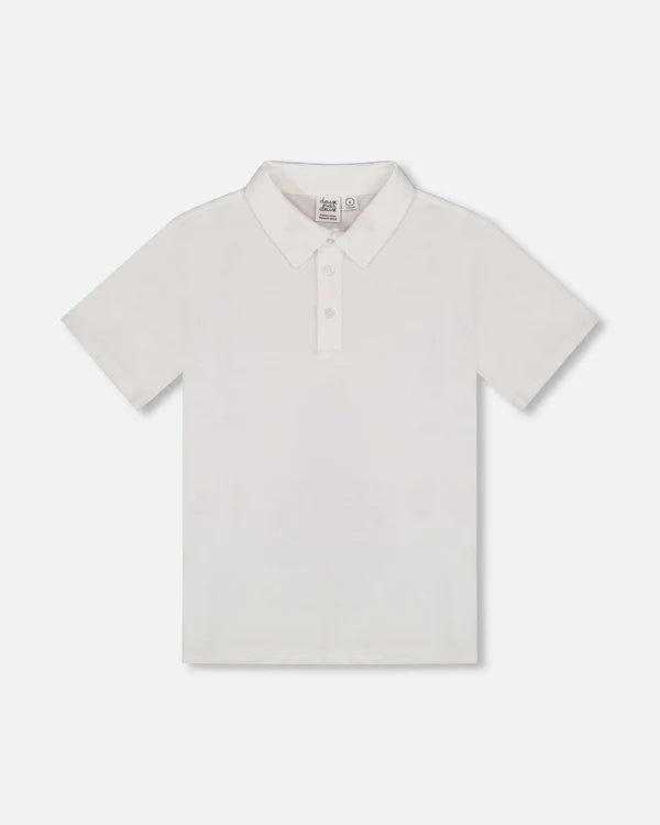 Our Short Sleeve Polo Shirt White is a wardrobe essential! Super soft in stretch cotton fabric, this shirt features short sleeves, a soft knit collar with a three button placket, and side vents at the hem.