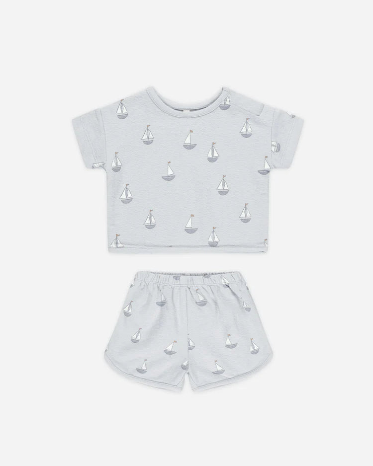 Featuring our 'sailboats' print on our 'sky' hue. Set sail for summer adventures in this cool style.