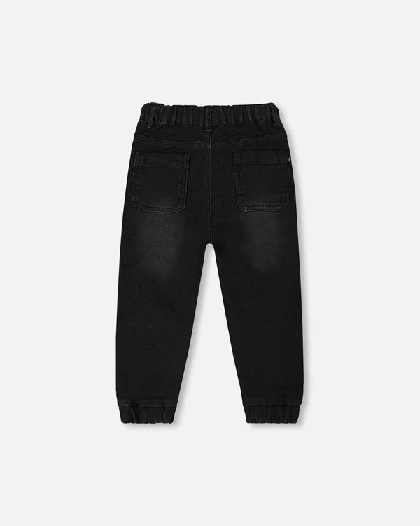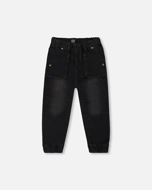 With darted knees and elastic ankles, our French Terry Denim Jogger Pant Black Jeans is equal parts soft, stretchy, and stylish! These essential pants are made from stretch cotton/poly French terry and feature a drawstring waistband, front utility pockets, and logo rivets for a touch of signature style.