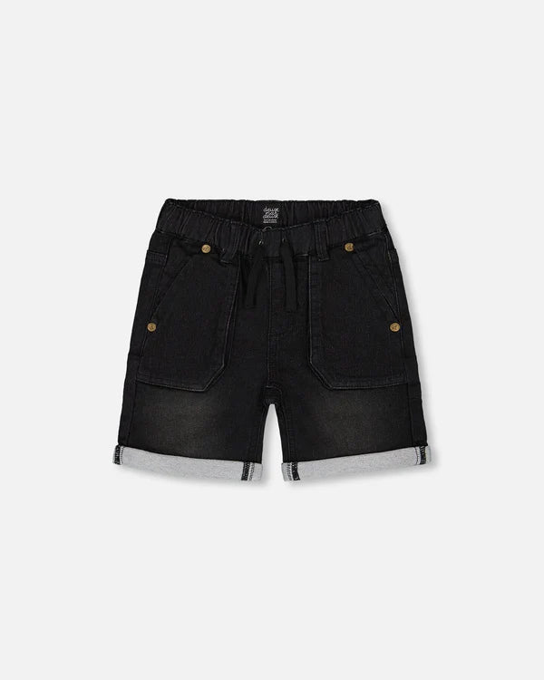 Our French Terry Denim Short Black Jeans is the bottom he can pair with any and every top he owns. This versatile short is made from stretch cotton/poly French terry and features a drawstring waistband, front utility pockets, and rolled cuffs. The fabric makes them a much comfier option than traditional denim jean shorts!