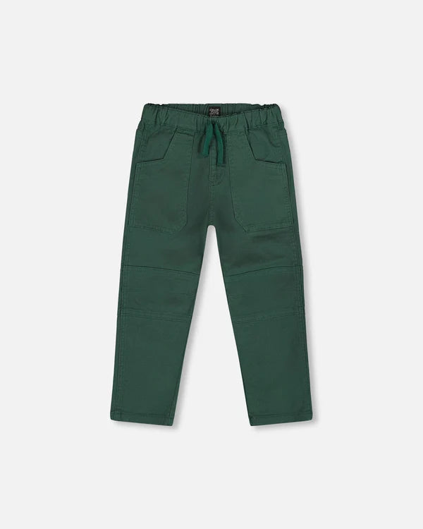 Deux Par Deux Twill Jogger Pant with Patch Pockets - Hunter/Forest Green