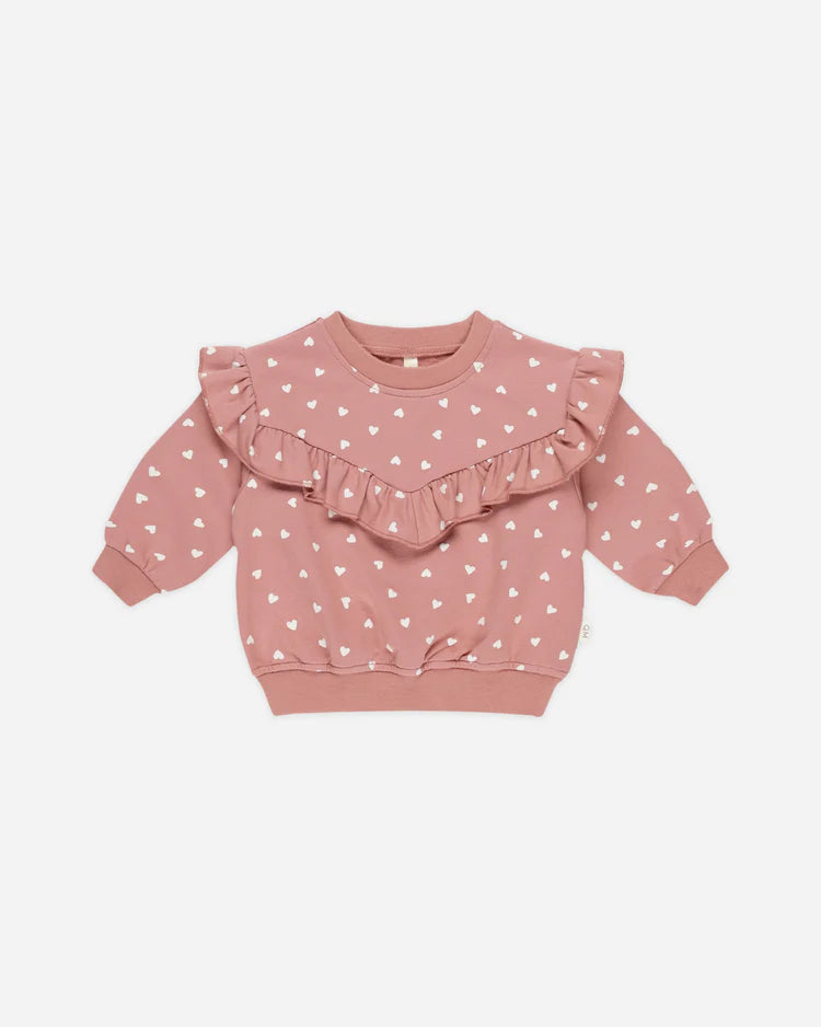 Soft, cozy sweatshirt in our french terry fabric with a sweet ruffle v detail. Pairs perfectly with our Relaxed Sweatpant.