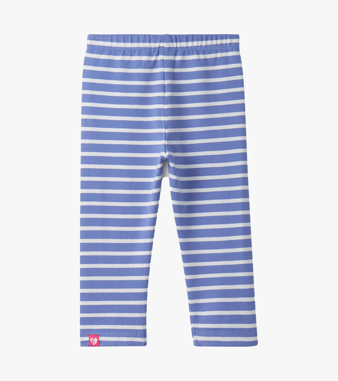 Bring playful charm to her everyday wardrobe with the Baby & Toddler Girls Kitty T-Shirt and Legging Set in Pink! This sweet set features a heathered pink long-sleeve crew neck tee with a gathered empire seam at the back for a gentle, flowy fit. The front showcases a large watercolour-style graphic of a purple and white cat wearing a fuchsia ribbon, perfect for little animal lovers. Coordinating white and blue horizontal striped leggings offer all-day comfort with a soft, stretchy cotton blend and a snug elastic waistband.