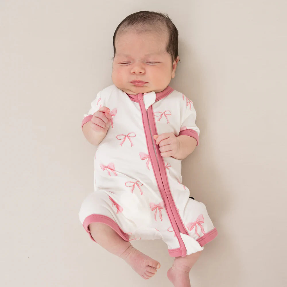 Made from soft, breathable bamboo rayon, this easy-to-wear shortall romper keeps little ones comfortable for sleep and play. Zippered for convenience and stretchy for easy movement, this one piece outfit is the softest addition to their warm weather wardrobe.