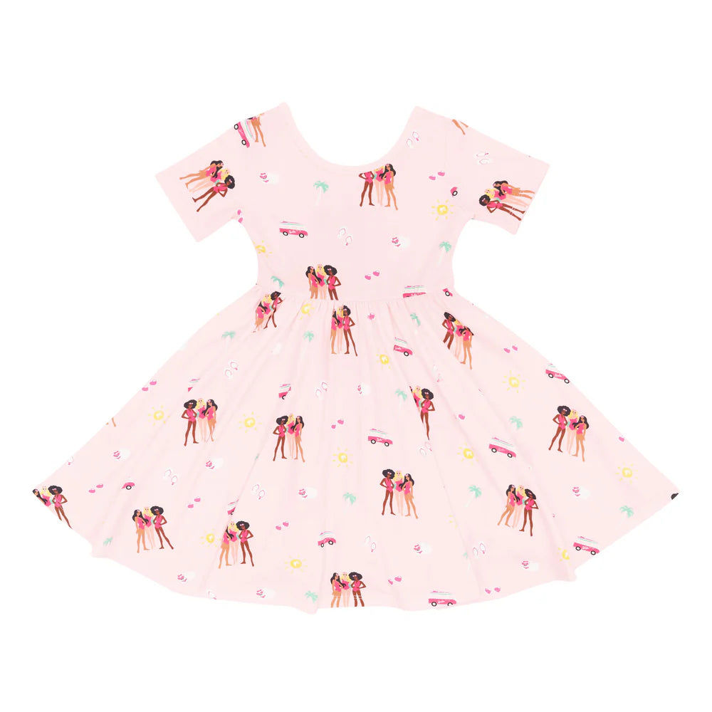 Cut from soft, stretchy bamboo fabric, this twirl dress features a full skirt so your toddler can spin in style. The classic design of the dress can easily be dressed up or down, making it the perfect everyday outfit.