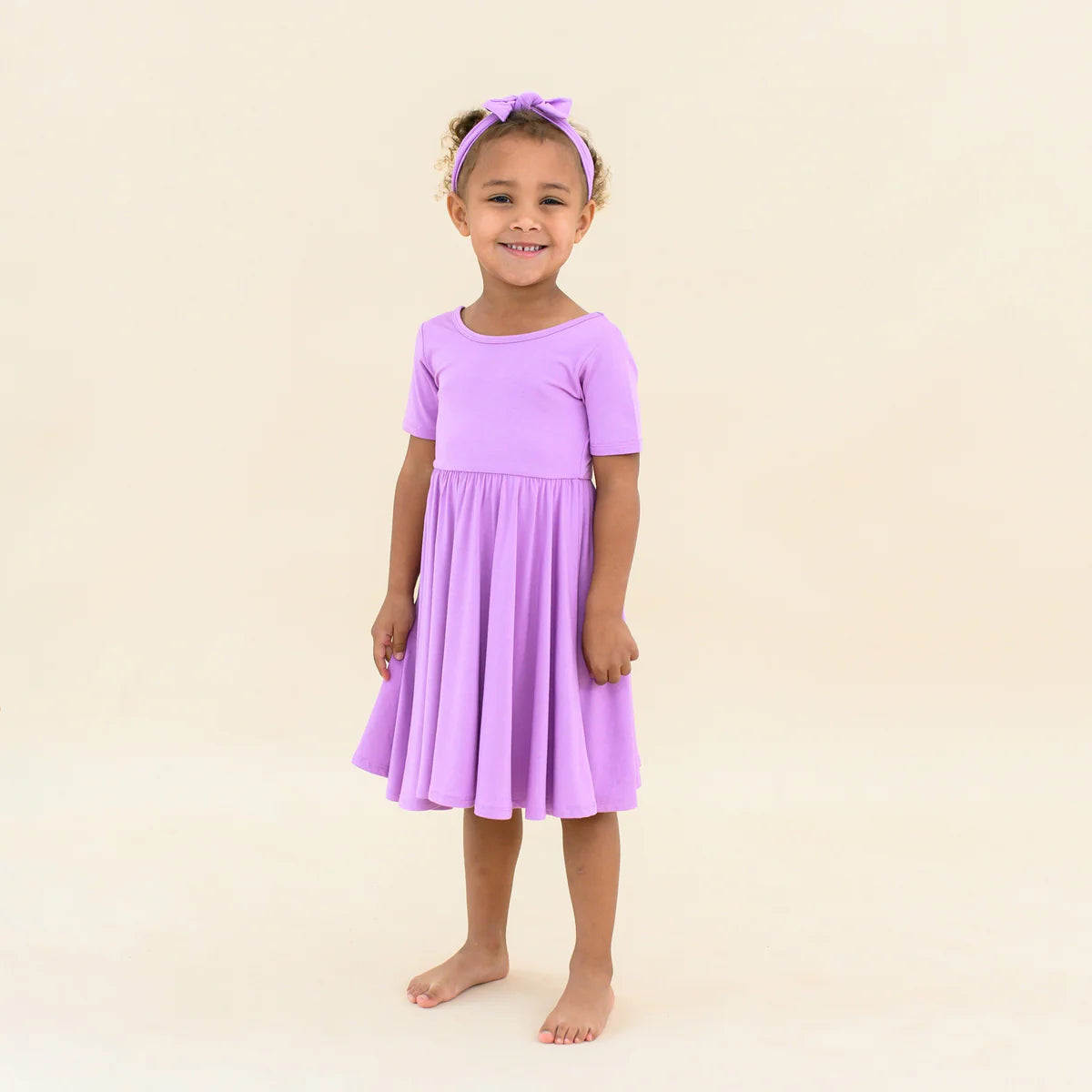 Cut from soft, stretchy bamboo fabric, this twirl dress features a full skirt so your toddler can spin in style. The classic design of the dress can easily be dressed up or down, making it the perfect everyday outfit.