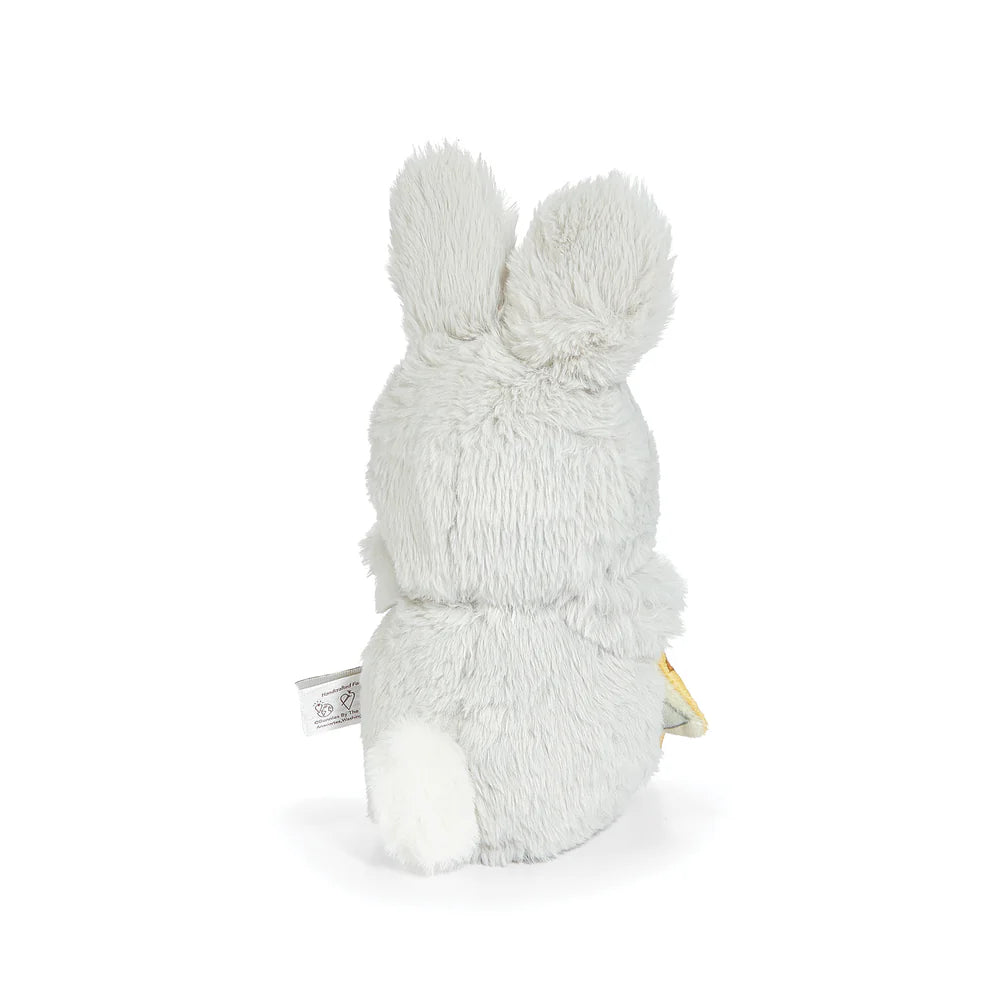 Sweet Bloom Bunny is ready for day or night, holding a bright yellow reversible sun and star accent toy, perfect for little hands to play and soothe with! Super soft grey nibble fur with velour features, and sweet embroidered details.