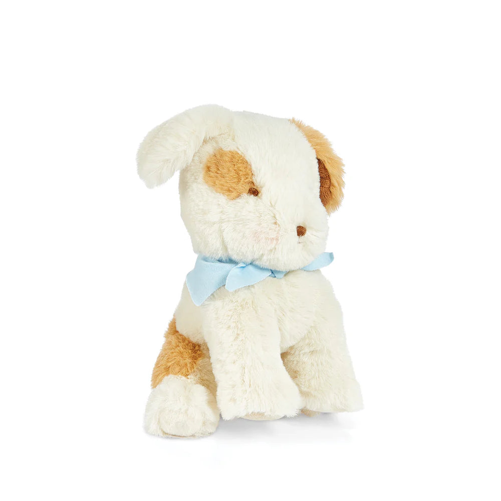 He has soft nibble fur in warm browns with mocha features. He comes adorned in his favorite blue sailor collar.  This Skipit the Pup stuffed animal has a hand-embroidered face and pink cheeks, snuggly soft and ready for adventures!