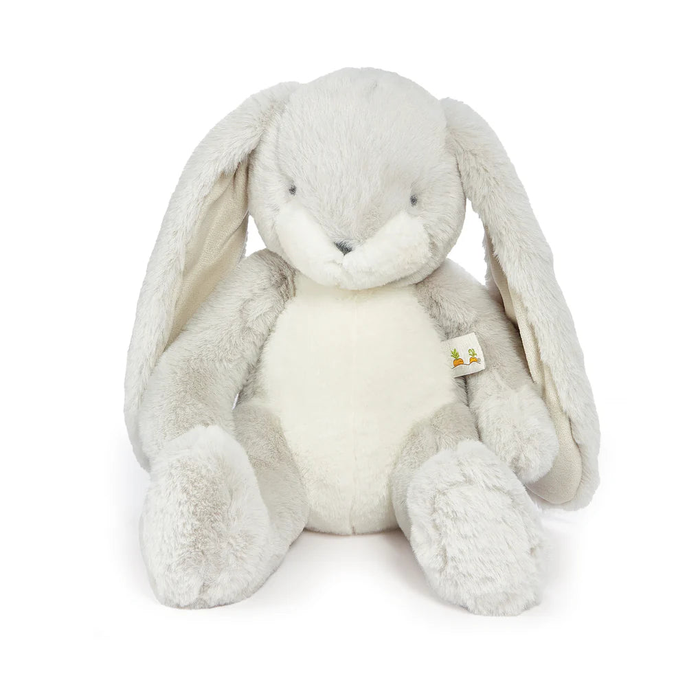 Sweet Nibble Bunny is sweet, tender and oh-my-gosh unbelievably soft. This stuffed animal has a hand-embroidered face, pink cheeks, and big fluffy tail. Features silver grey and warm white fur, with velour-lined ears perfect for personalizing. This plush bunny will become your best friend indeed.