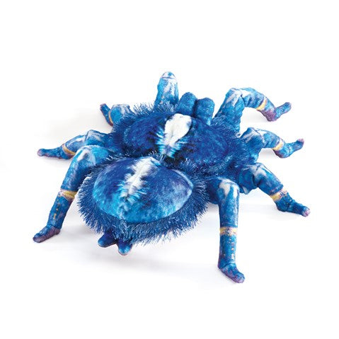 Creep and crawl into playful fun with the stunning Blue Tarantula puppet. No ordinary arachnid, this uncommonly beautiful species is startling in size and color with realistic indigo velboa plush highlighted with hairy pine needle fringe. Animate the long spider legs of this friendly glove puppet to dispel all feelings but delight.